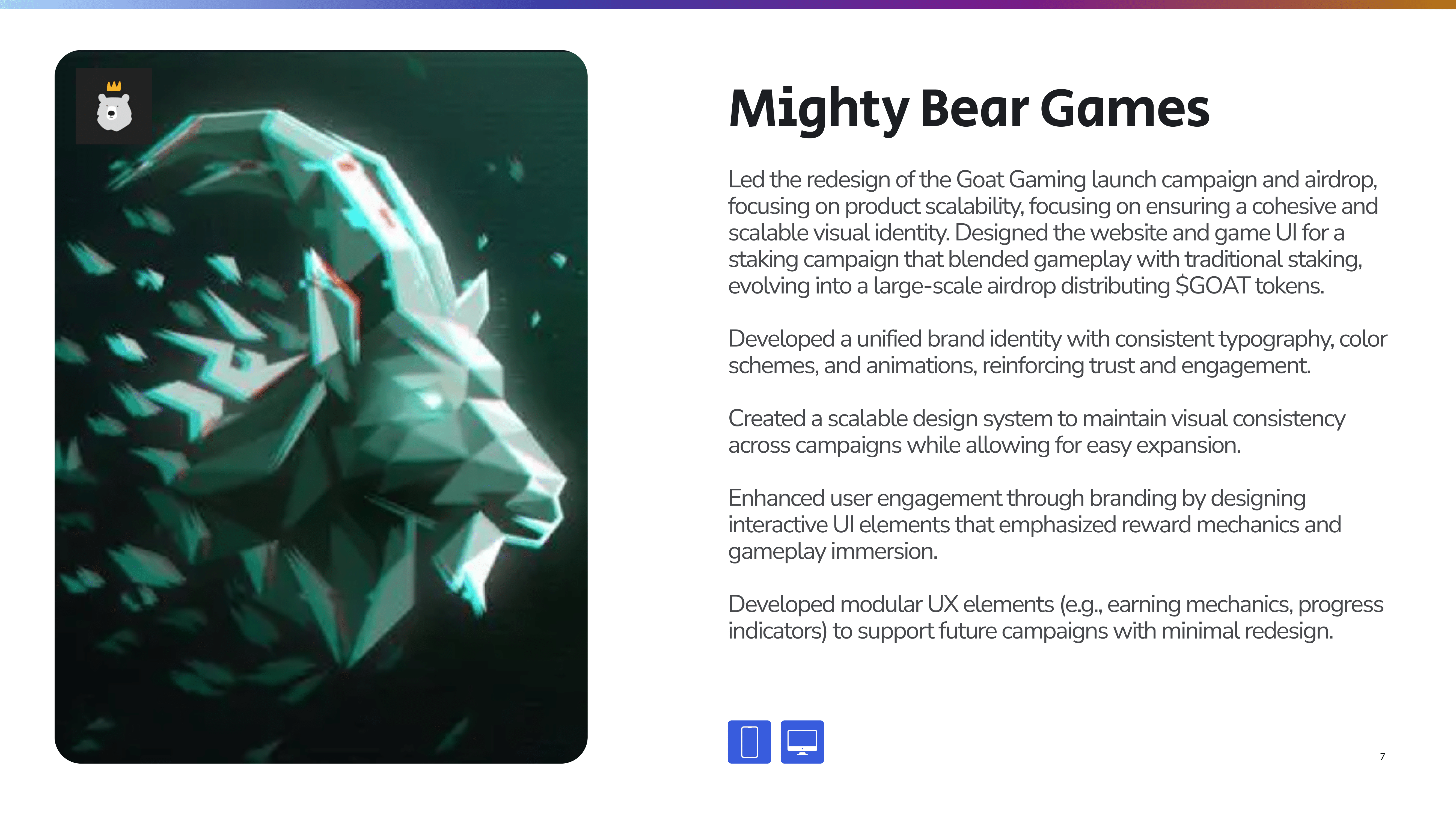 Mighty Bear Games "The world's most innovative Web3 games studio". Pioneering player-first fun in @playgoatgaming @PlayMightyHero @thelegitgamesco.